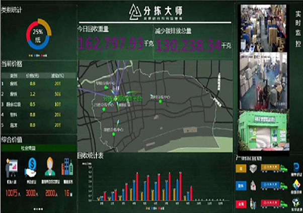 采取垃圾分类的两网融合模式,通过以分拣大师信息化系统/物联网技术为载体、以无接触式和嵌入式分类回收工具为手段、分拣中心为枢纽、末端资源化利用为目的,整合产业上下游,吸引社会全主体参与垃圾分类,实现农村、工业园区、社区等场景的全覆盖,打通了垃圾从源头分类回收、中端分拣清运,到末端资源化利用的全流程形成了一套成本低、效率高、可持续推广的垃圾分类回收再生资源综合利用新模式